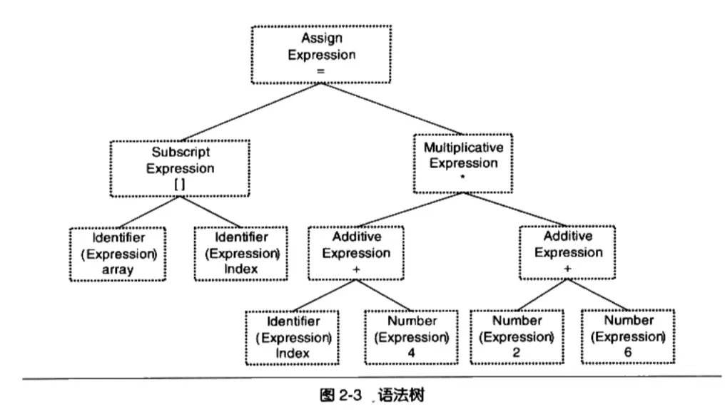 - 語法分析,經過語法分析器 Grammar Parser 將掃描器產生的記號進行語法分析,產生語法樹 Syntax Tree;