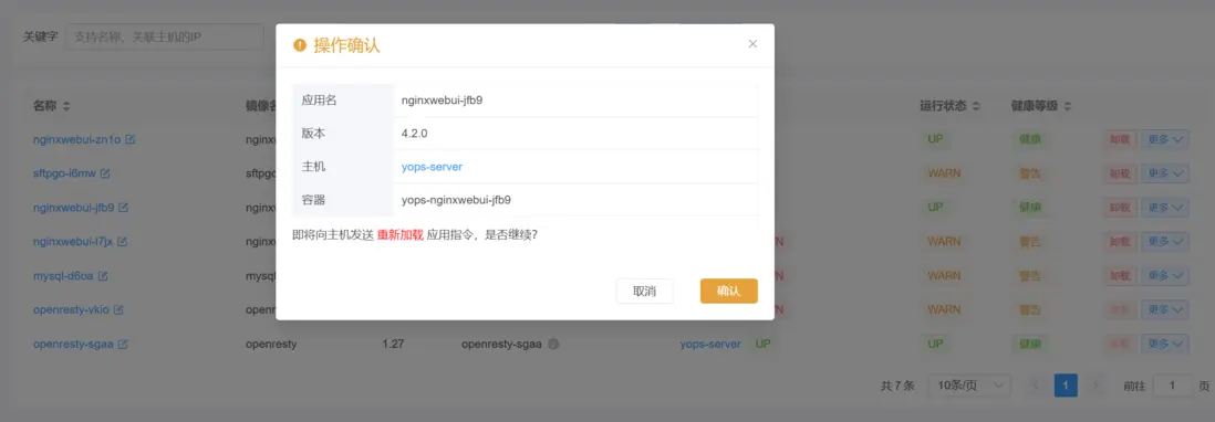 應用模塊,Yops 將所有通過 應用商店安裝的容器 統一展示,用户可以跨主機集中管理這些容器。