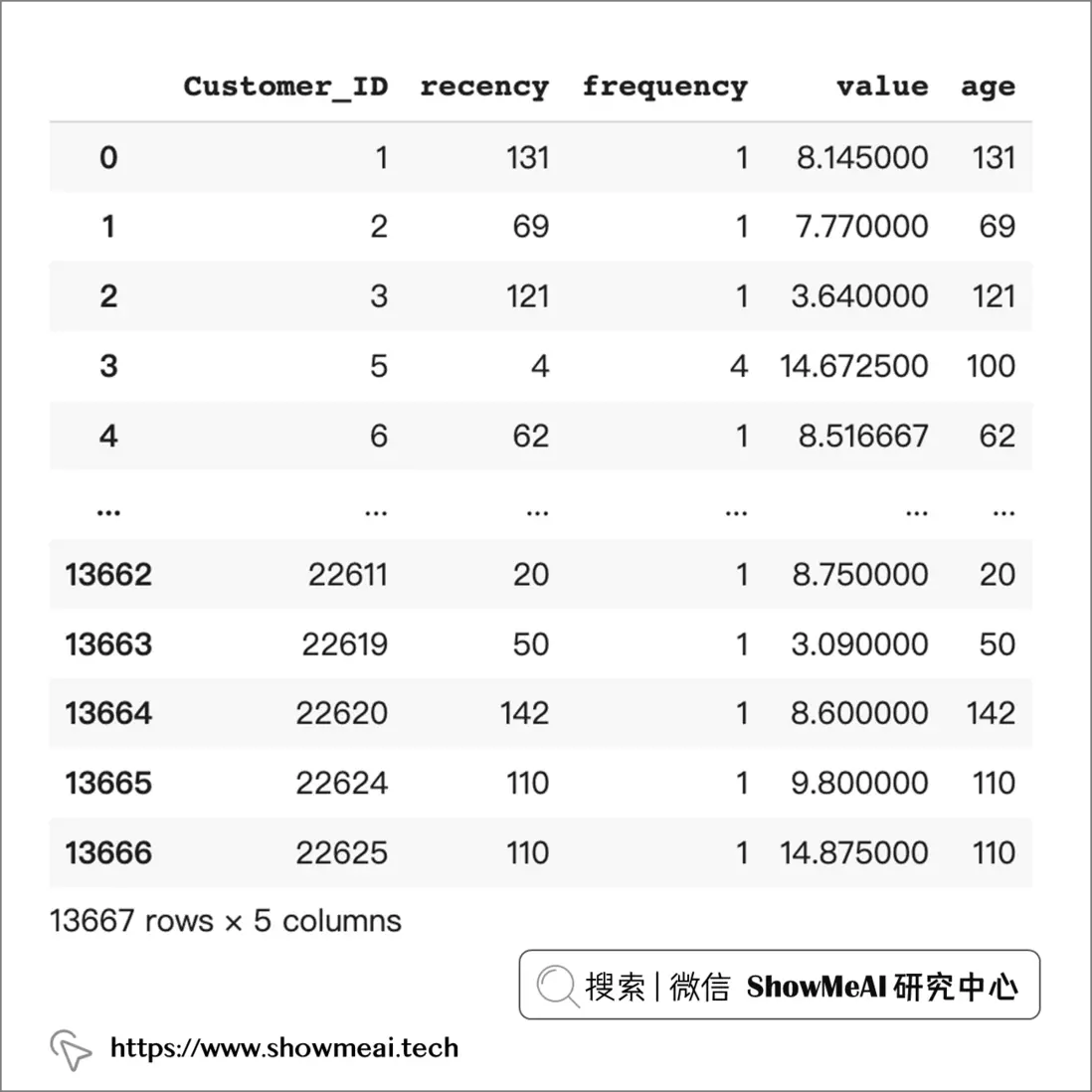 🏆 實戰數據集下載(百度網盤):公✦眾✦號『ShowMeAI研究中心』回覆『實戰』,或者點擊 這裏 獲取本文 [[26] 基於機器學習的客户價值預估](https://www.showmeai.tech/art...) 『scanner在線交易數據集』