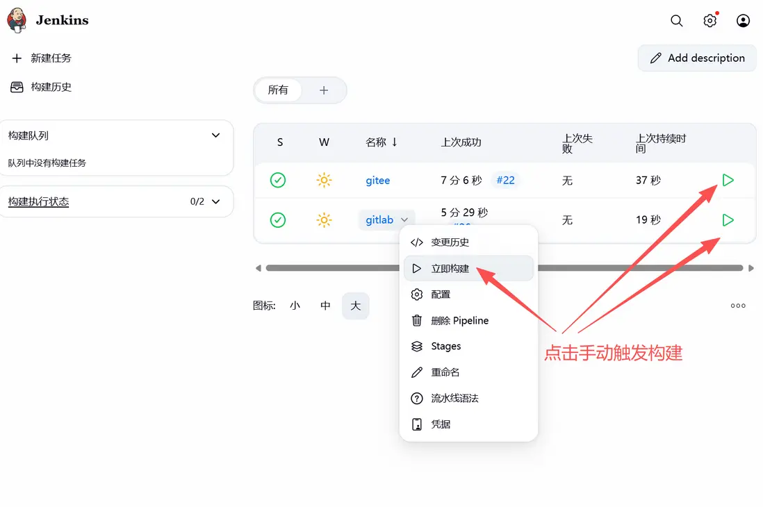 方式一、手動點擊觸發jenkins拉取gitee代碼構建CICD步驟流程