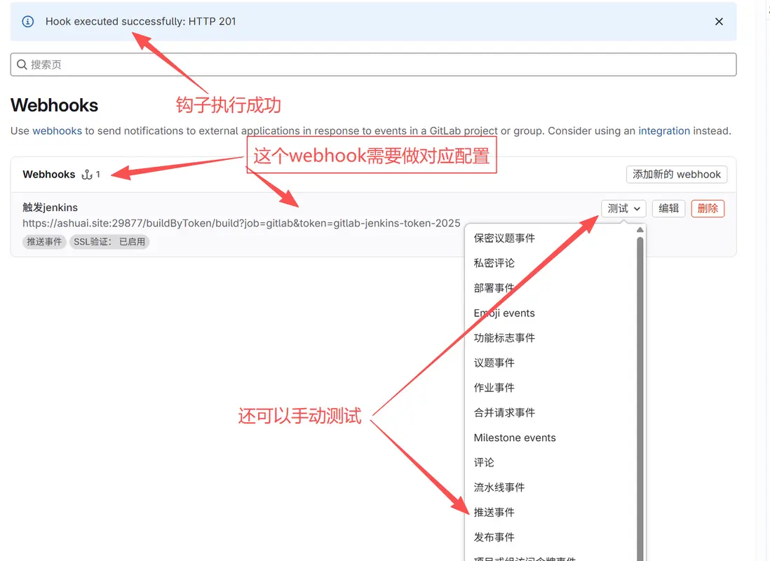- 觸發gitlab的webhook告知jenkins可以拉取最新代碼了