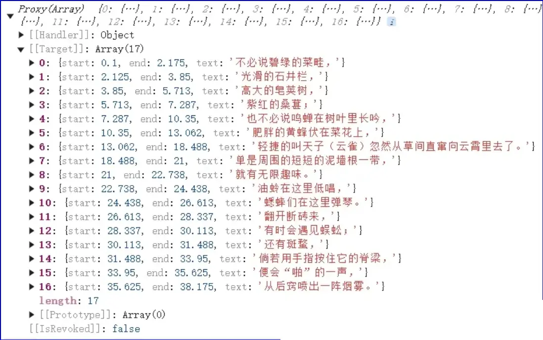 加工完畢以後,能得到這樣的字幕數組對象,如下: