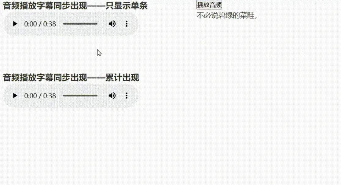 <h3>音頻播放字幕同步出現——只顯示單條</h3>