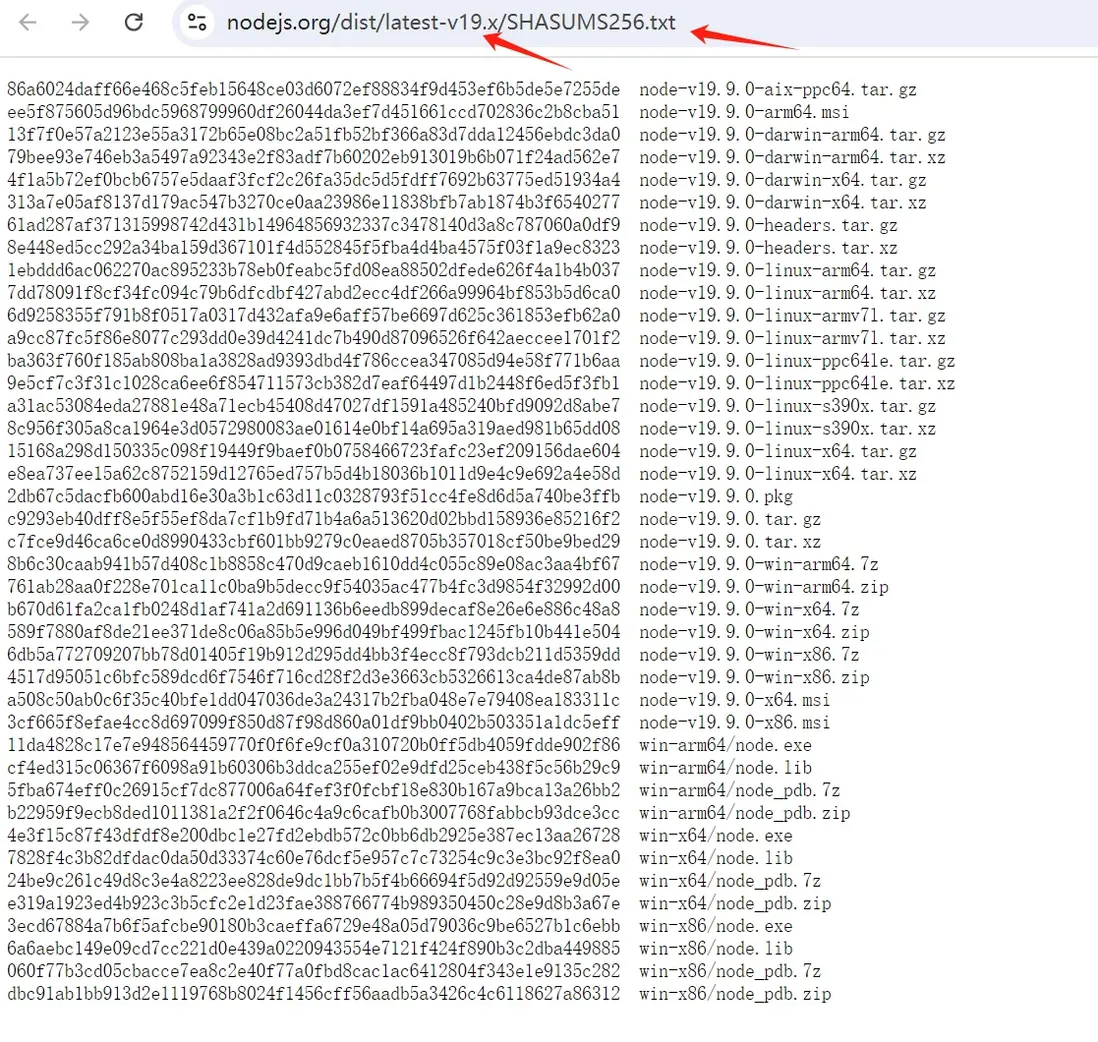 - nvm下載安裝node版本,是通過 https://nodejs.org/dist/latest-v19.x/SHASUMS256.txt 這個網站進行版本獲取信息對應下載的