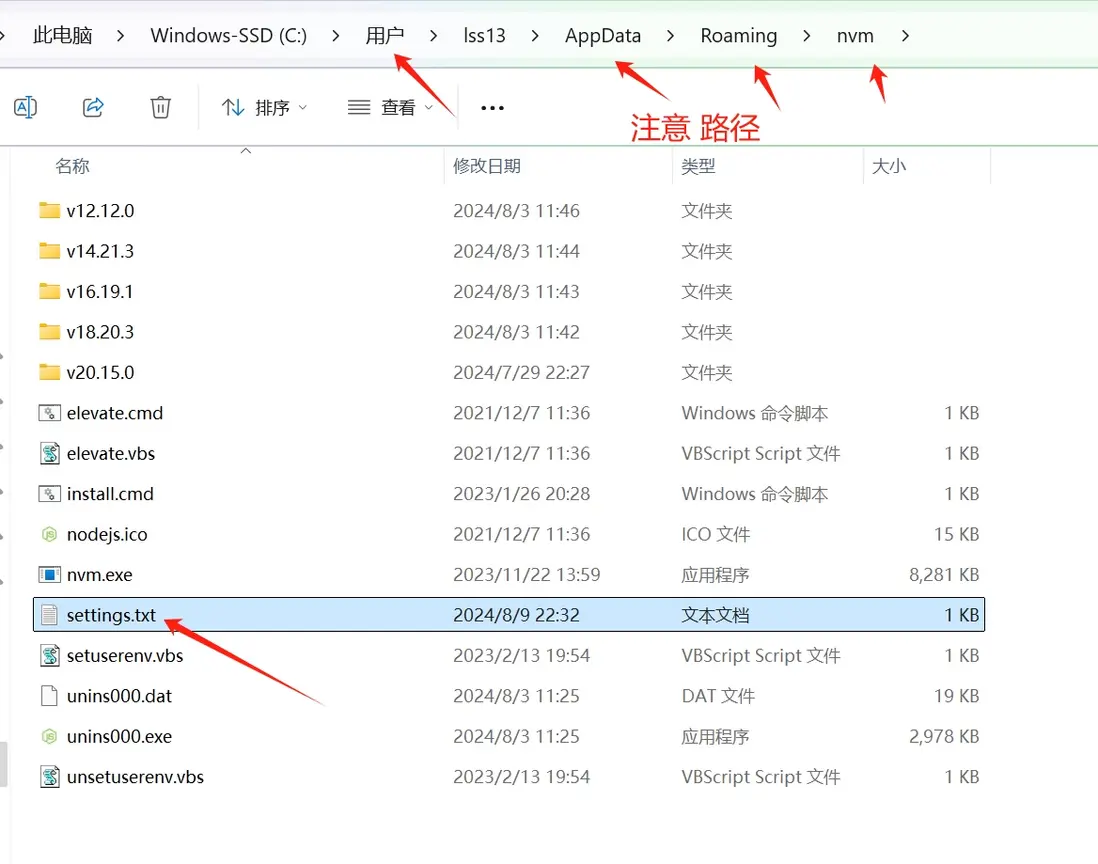 C:\Users\lss13\AppData\Roaming\nvm - 如下圖: