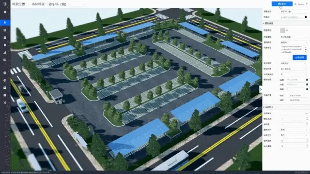 1.高保真場景構建: 圖觀 場景編輯器 是構建地上地下停車場三維世界的利器。它能夠快速搭建包含精確車位佈局、複雜車道流向、關鍵設施的高仿真三維場景,為孿生應用提供沉浸式、高精度的空間。