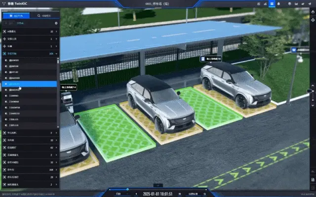 基於孿易IOC構建的停車場數字孿生應用,通過地上/地下雙層三維場景復現、車位狀態實時映射、遠程設備控制、智能數據分析等核心能力,讓停車場的每一個車位、每一台設備、每一次車輛進出都變得 "可視、可管、可控",實現停車管理從“被動響應”到“主動管控”的跨越。