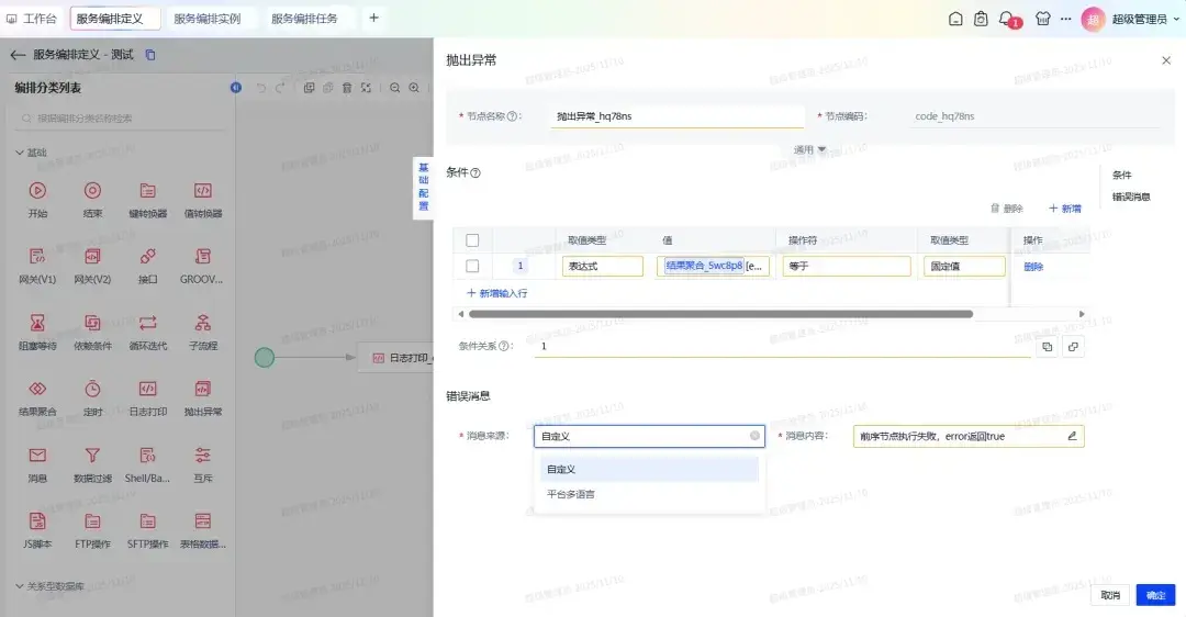 該節點用於提升編排流程的健壯性與可控性,實現主動的、條件化的流程中斷與錯誤上報。