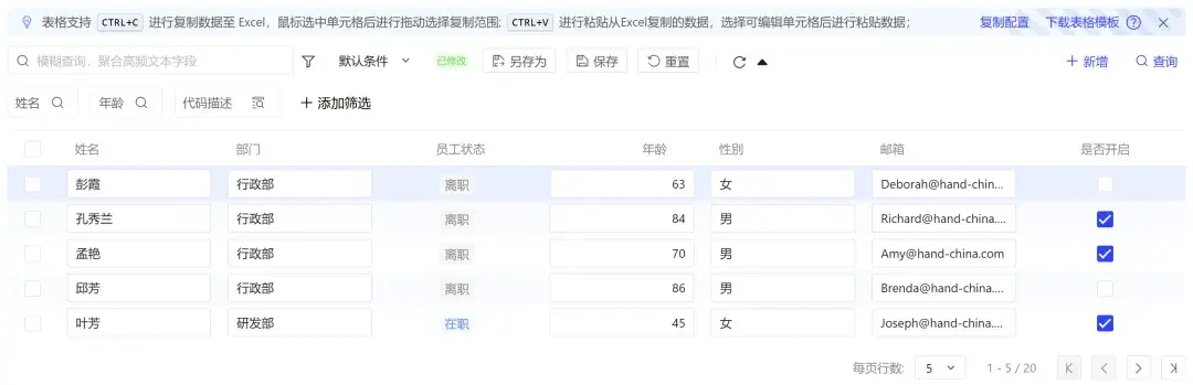 本次版本共修復 40+ 項細節問題,涉及 表格複製粘貼、動態篩選、附件上傳、樹形數據、彈窗交互、輸入校驗 等關鍵功能點。