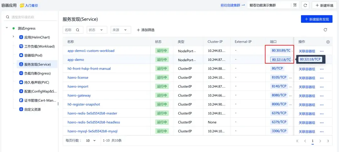 我們如上部署時選擇了NodePort,系統自動幫我們創建了NodePort類型的服務發現資源,可直接通過NodePort訪問
