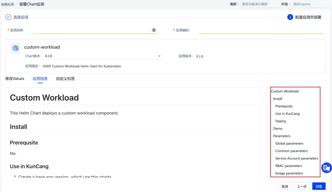 部署Chart應用,原生Helm Chart方式部署,可更細粒度精準控制更多參數信息