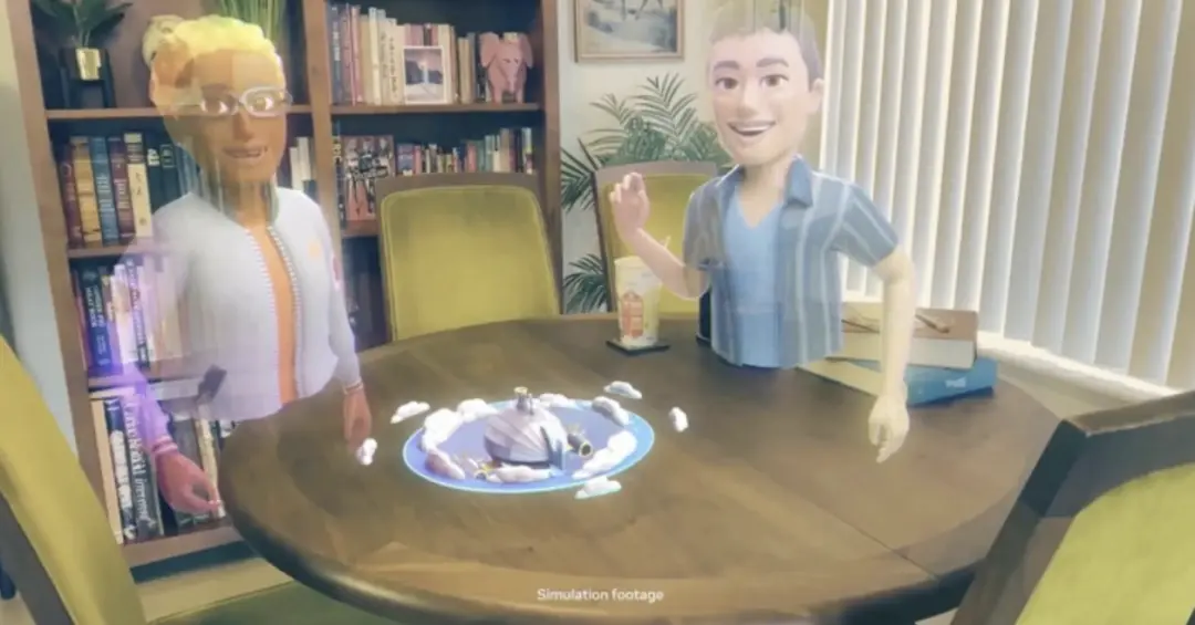 除佩戴式頭顯外,扎克伯格還透露並展示了 Meta 在 AR 眼鏡研發上取得的最新進展 —— 首款成熟的 AR 眼鏡 Project Nazare。在演示中,用户通過 Whatsapp 發送消息相約進行一場遊戲,隨後朋友的虛擬化身出現在用户視野中,遊戲正式開始。