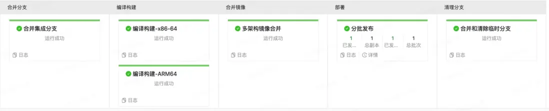 測試應用驗證通過後,塗鴉團隊開始着手進行發佈系統的改造。由於靜態合併部署比較適合部署相對穩定不頻繁的場景 (如私有云) ,而公有云更適合動態合併部署模式。但為了給私有云交付打前戰,塗鴉一期先在公有云上實現靜態合併部署,快速試點驗證。而靜態合併部署是需要所有模塊和基座一起發佈的,為了儘可能不影響開發同學效率,我們同時支持單模塊獨佔基座和多模塊合併部署兩種發佈模式,方便在開發、日常、預發、線上等環境進行實地試運行,完整驗證業務鏈路。