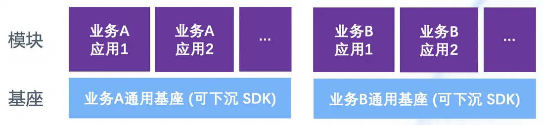 首先按業務域及流量情況將應用拆分為基座或模塊: