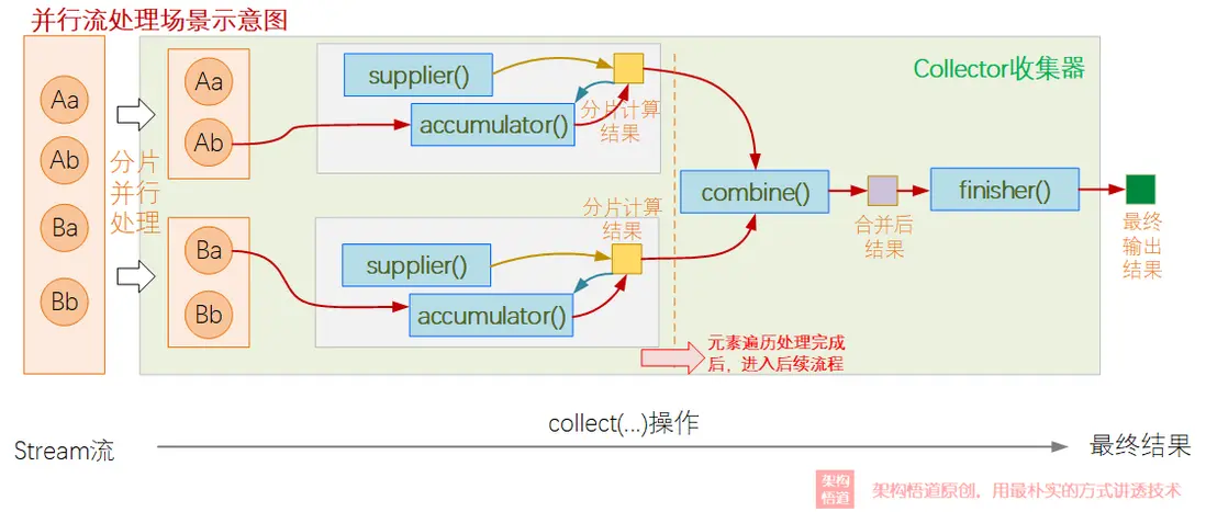 當然,如果我們的Collector是支持在並行流中使用的,則其處理過程會稍有不同: