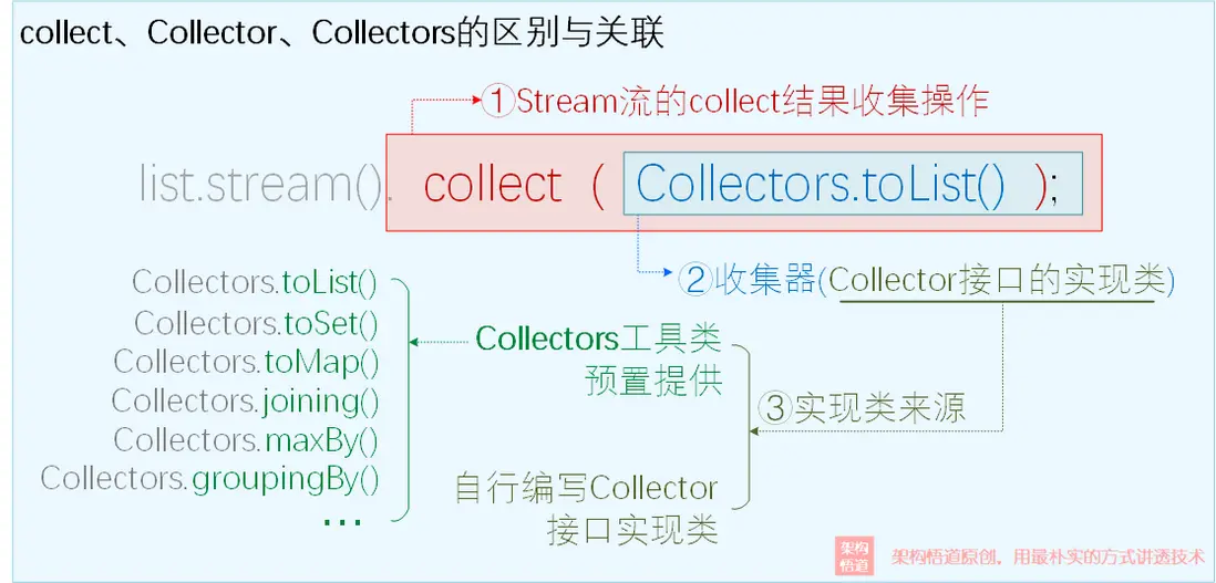 剛接觸Stream收集器的時候,很多同學都會被collect,Collector,Collectors這幾個概念搞的暈頭轉向,甚至還有很多人即使已經使用Stream好多年,也只是知道collect裏面需要傳入類似Collectors.toList()這種簡單的用法,對其背後的細節也不甚瞭解。