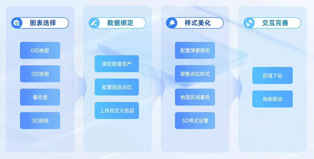 在企業運營管理中,地理分佈數據的可視化展示一直是提升決策效率的關鍵環節。傳統報表與靜態圖表難以直觀呈現分公司佈局、物流流向、區域業績等多維空間信息,若採用代碼開發方式構建專業級地圖大屏,不僅技術門檻高、開發週期長,且後期維護與樣式調整極為不便。而多數可視化工具雖提供基礎地圖組件,卻難以支持OD圖、3D地圖、着色圖等高級形態,更缺乏圖層聯動、動態下鑽等交互能力,導致搭建的大屏“好看不實用”,無法真正支撐企業精細化運營。