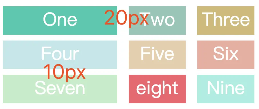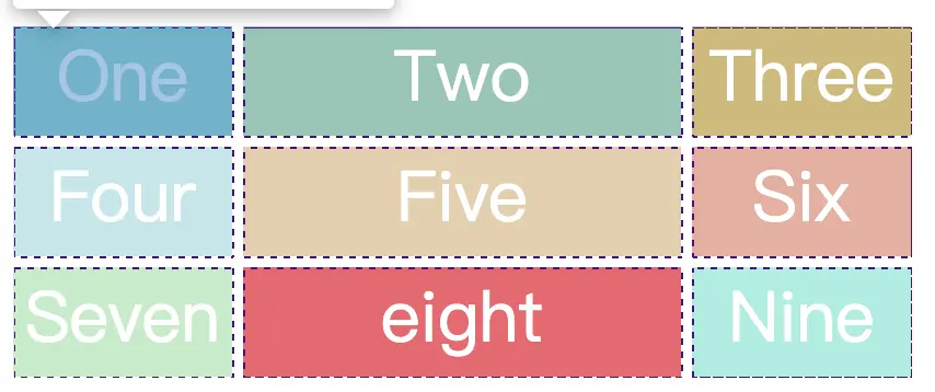 為了儘可能填滿表格,使用 grid-auto-flow: row dense 可以填充上圖中 Three 和 Seven 之間的空白。效果如下所示: