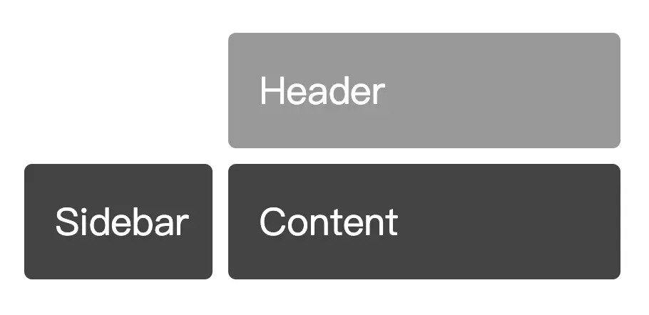 樣式類 .sidebar .content .header 所在的元素放在上面 grid-template-areas 中定義的 sidebar content header 區域中