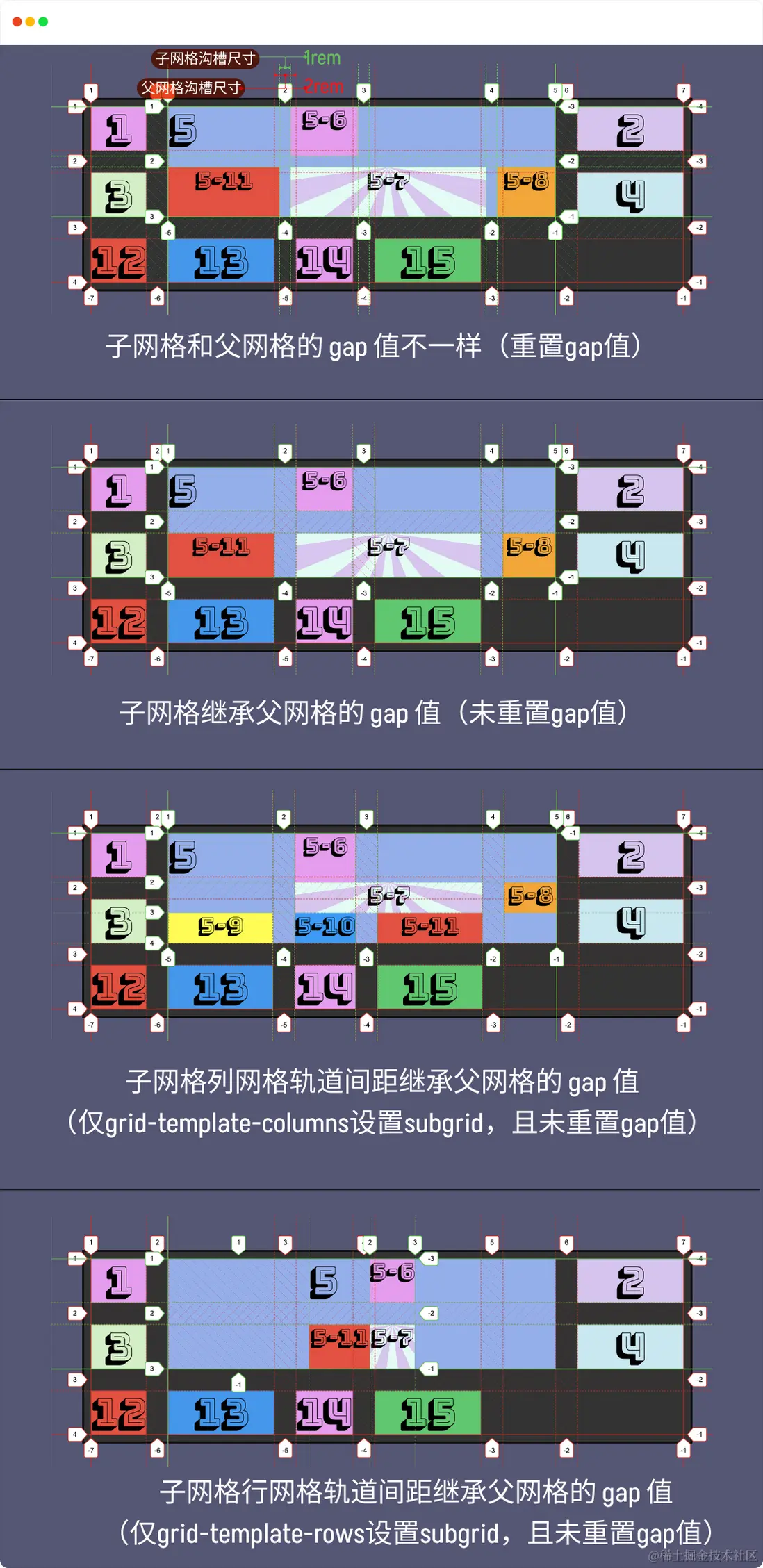 CSS 滾動捕捉相關的屬性和 CSS 的 Flexbox、Grid 屬性類似,分為作用於容器(滾動容器)屬性作用於定位子項(滾動容器子元素)屬性。其中作用於滾動容器的屬性主要有 scroll-snap-typescroll-paddingscroll-snap-stop ;作用於定位子項的屬性主要有 scroll-marginscroll-snap-align