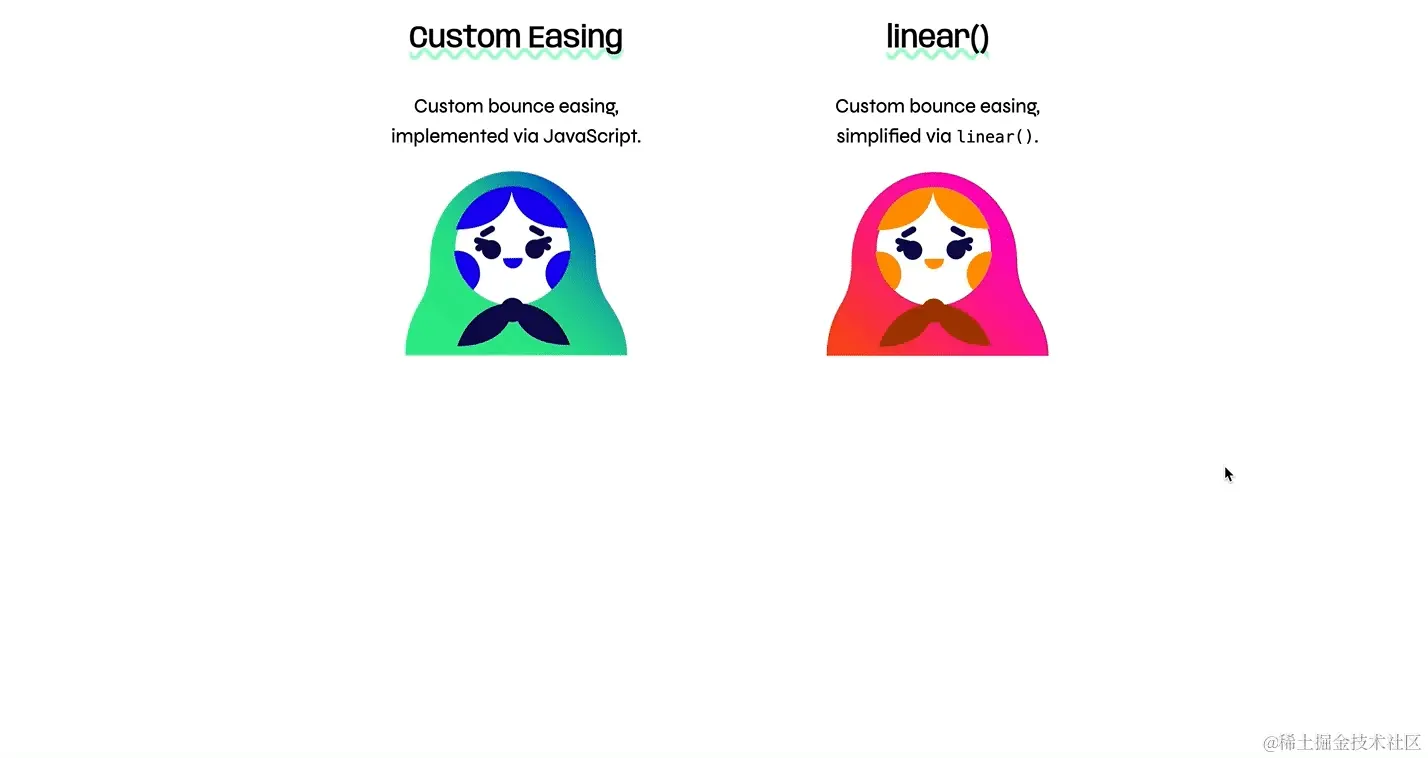 有關於 linear() 函數更詳細的介紹,可以參閲《Web 動畫之旅》的《使用 linear() 函數創建令人驚歎的動畫曲線》!