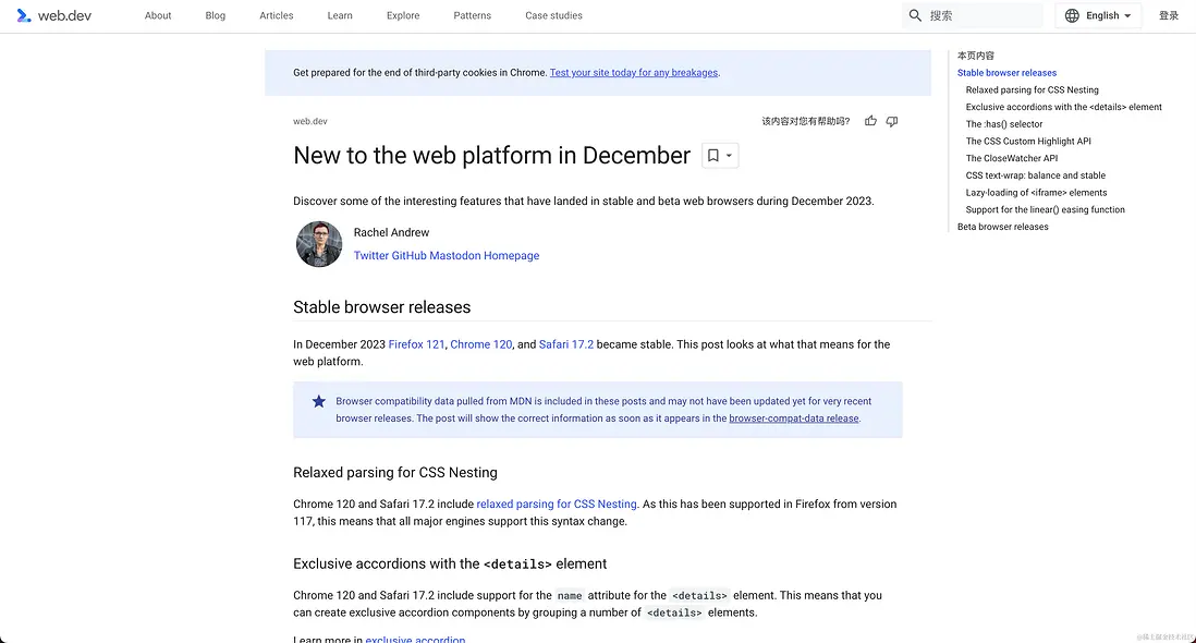 正如上圖所示,它陳述了 2023 年 12 月份 Web 平台上的新功能。