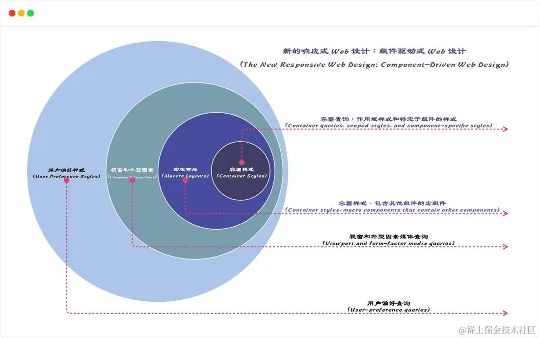 可以説,零零總總有幾十個 CSS 新特性得到了主流 Web 平台的支持,可以説 2023 年是 CSS 很重要的一年。這些進展使開發者們曾經認為在 Web 平台上不可能實現的功能成為現實。現在,主流的現代 Web 瀏覽器都支持 CSS 容器查詢(尺寸查詢、樣式查詢和狀態查詢等)、子網格(subgrid)、關係型選擇器 :has() (也常被稱為父選擇器)、複雜的第 n-* 選擇器,以及一系列新的顏色空間和函數,例如 color()color-mix() 。Chrome 瀏覽器還支持僅用 CSS 實現的滾動驅動動畫,以及在 Web 視圖之間平滑過渡的視圖過渡效果(如果你對 Web 動畫感興趣,可以移步閲讀《Web 動畫之旅》)。最重要的是,有許多新的基礎特性出現,例如 CSS圖層(@layer)、 嵌套和作用域等,可以更好的提高Web 開發者編寫 CSS 的體驗,甚至是改變 Web 開發者編寫、維護和管理 CSS 的方式。