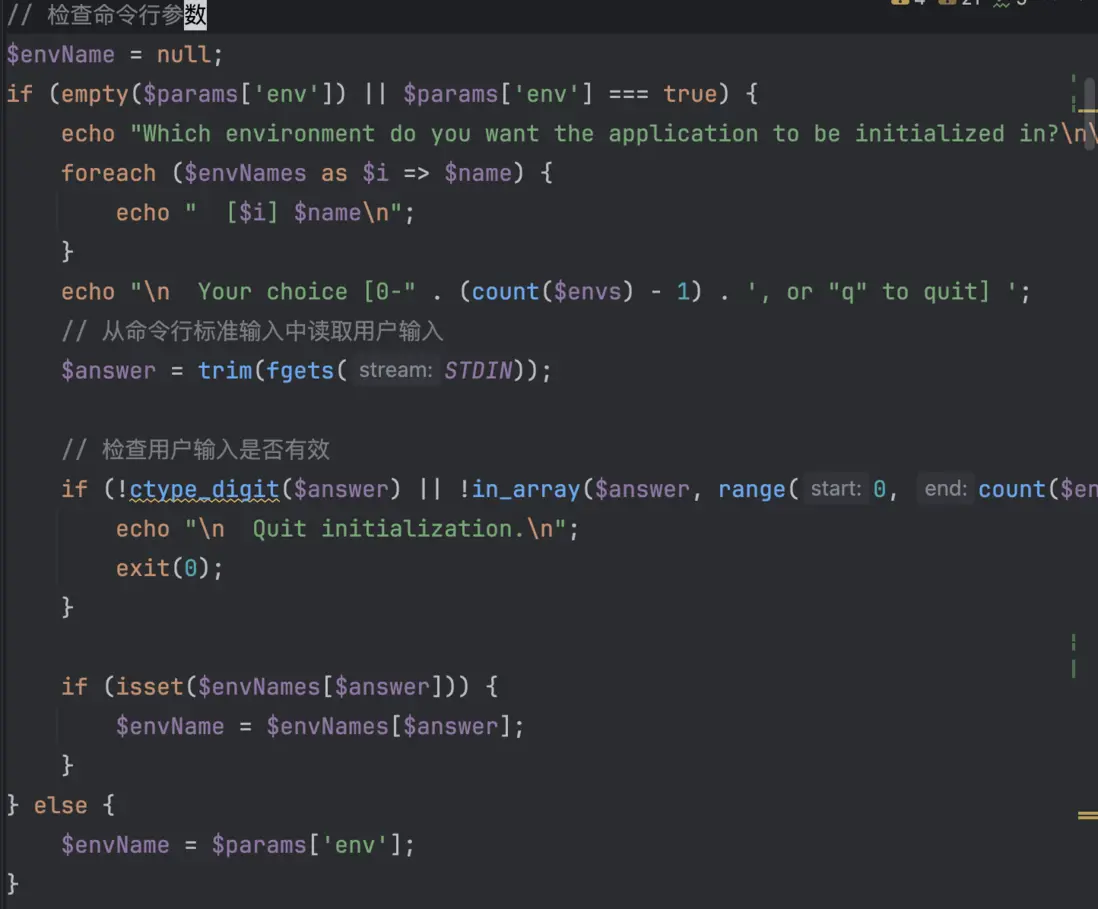 • 加載 environments/index.php 文件,拿到不同環境配置指定的配置文件關係。