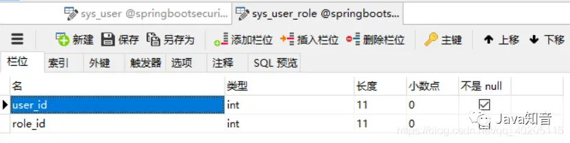 - 用户和角色中間表(sys_user_role)====> 用户和角色中間表