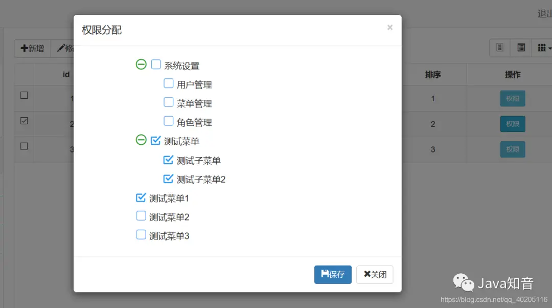 - 角色(SysRole)=====> 角色及角色對應的菜單