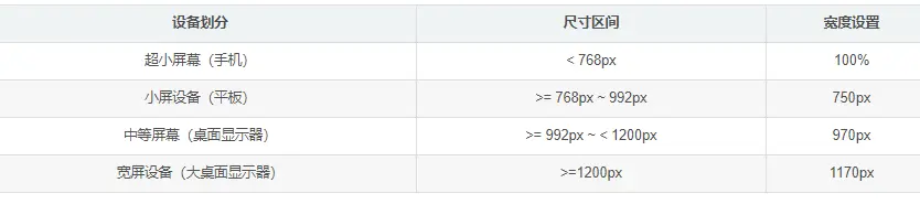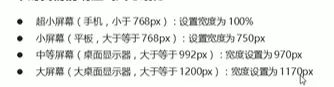平時的響應式尺寸劃分:(設置的寬度比屏幕要小一點是為了中間區域居中,兩側空白,好看一點)