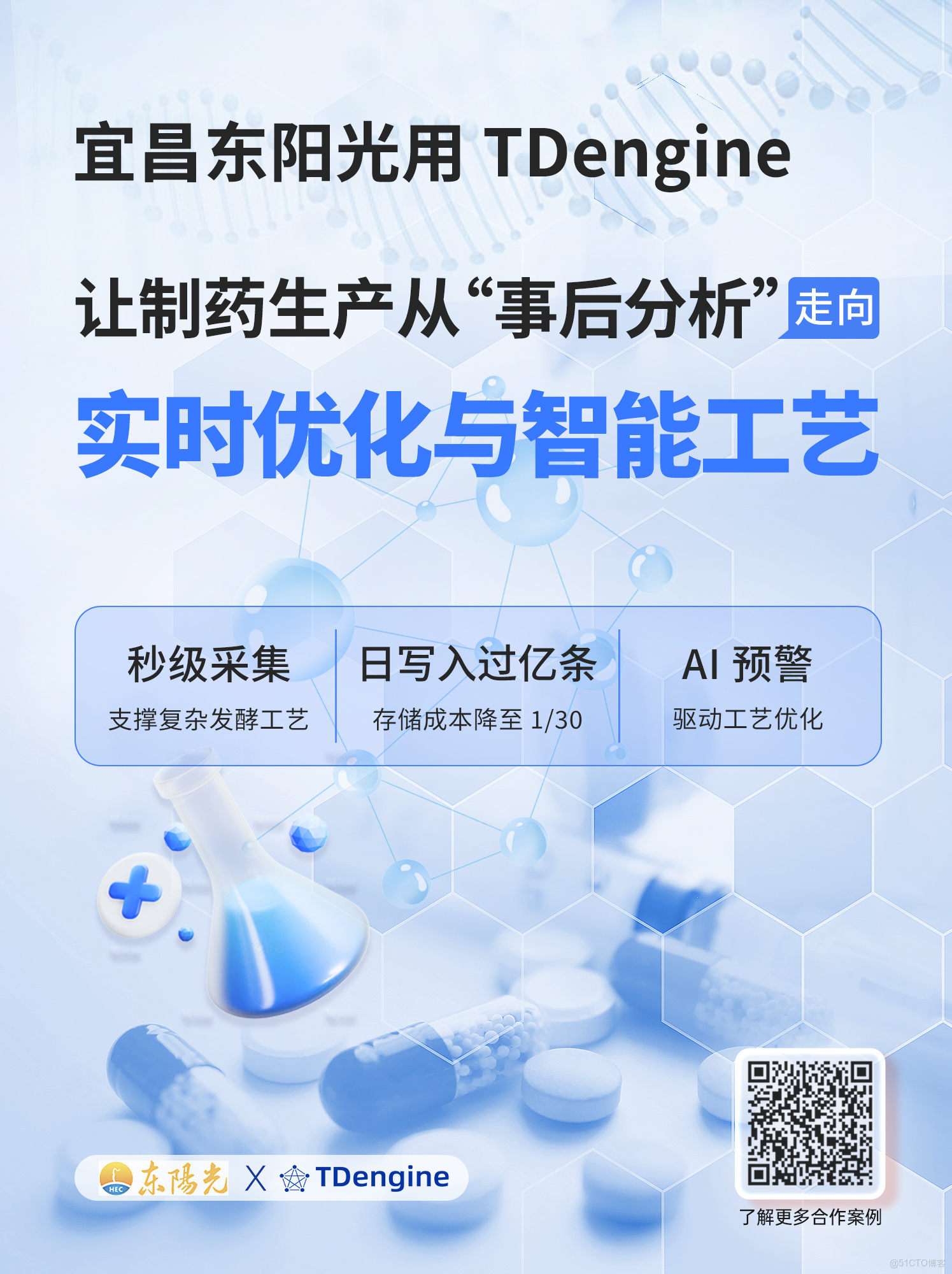 實際效果也印證了這次技術路線的正確性。新系統將採集頻率提升至 1 秒級,數萬個採集點一天輕鬆寫入過億條數據;得益於 TDengine TSDB 的列式壓縮與多級存儲機制,存儲成本相比 SQL Server 直接降到 1/30。TDengine TSDB 內置的 TDgpt 更為後續的預測性維護、能耗優化、工藝參數自動調優提供了落地能力,讓發酵工藝的異常預警不再依賴經驗,而能由時序大模型自動識別。憑藉這一數據底座,東陽光生化正加速向“智能工藝工廠”邁進。