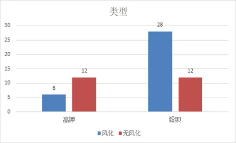 下圖為類型與風化的關聯柱形圖,清晰呈現高鉀玻璃未風化佔比高、鉛鋇玻璃風化佔比高的特徵。