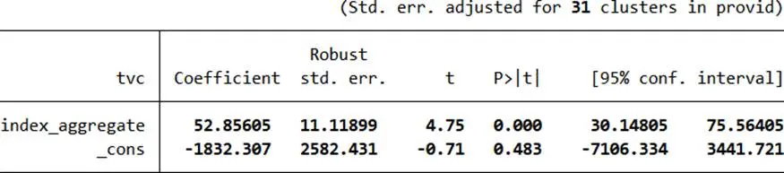 - tvc = -1832.307 + 52.85605×index_aggregate + e1