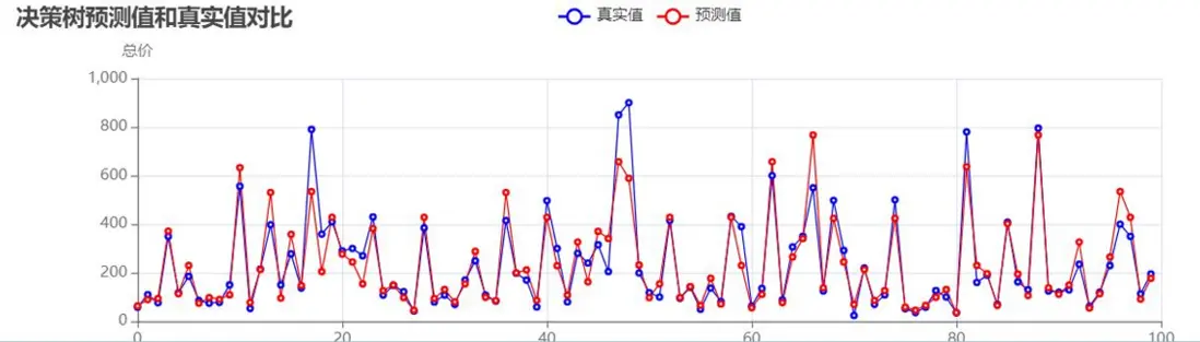 模型 R² MSE RMSE 決策樹 0.871 4220.42 64.96 梯度提升樹 0.895 3422.84 58.50 隨機森林 0.911 2928.50 54.16 結果表明:剔除異常值並優化參數後,三種模型的預測精度顯著提升,其中隨機森林模型表現最佳,R²達到0.911,預測值與真實值擬合度良好,能有效捕捉二手房價格的核心影響因素。