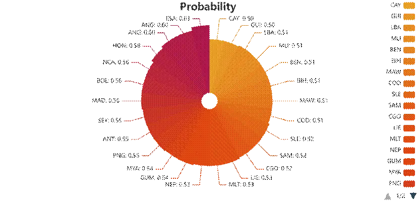 模型設定0.5為概率閾值,預測76個未獲獎國家中有26個可能在2028年實現首獎突破,但所有國家的獲獎概率均低於0.7,其中薩爾瓦多(ESA)的概率最高(0.63),反映出新興國家實現奧運獎牌突破仍面臨較大挑戰。
