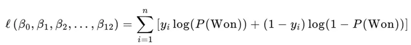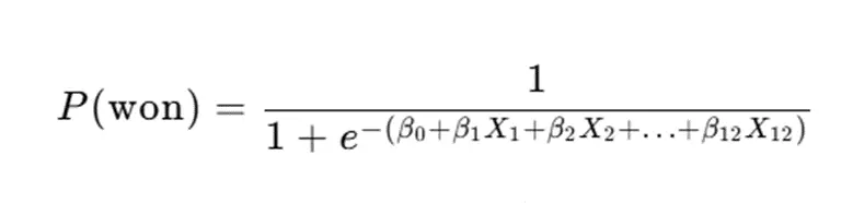 其中,P(won)為獲獎概率,β₀-β₁₂為迴歸係數,X為特徵變量,模型通過最大化似然函數求解最優係數: