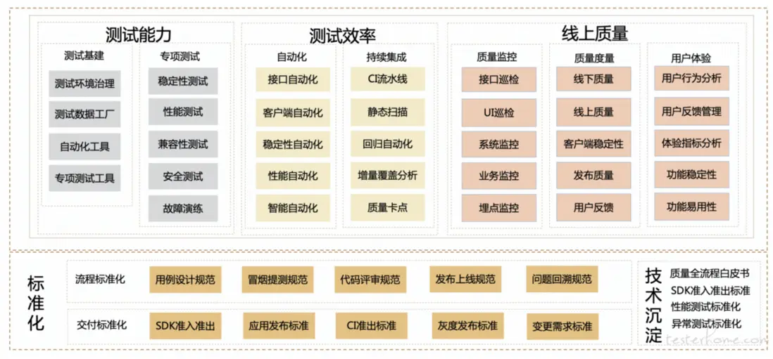 | 把握關鍵:哪些環節對實現此目標最為關鍵 | 建設統一有效的研發流程規範和交付標準,做好各個環節的質量卡點,提升交付質量 |