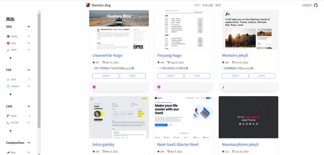 主題狗themes.dog 精選上百種優秀開源網站主題、博客主題、商城模板。