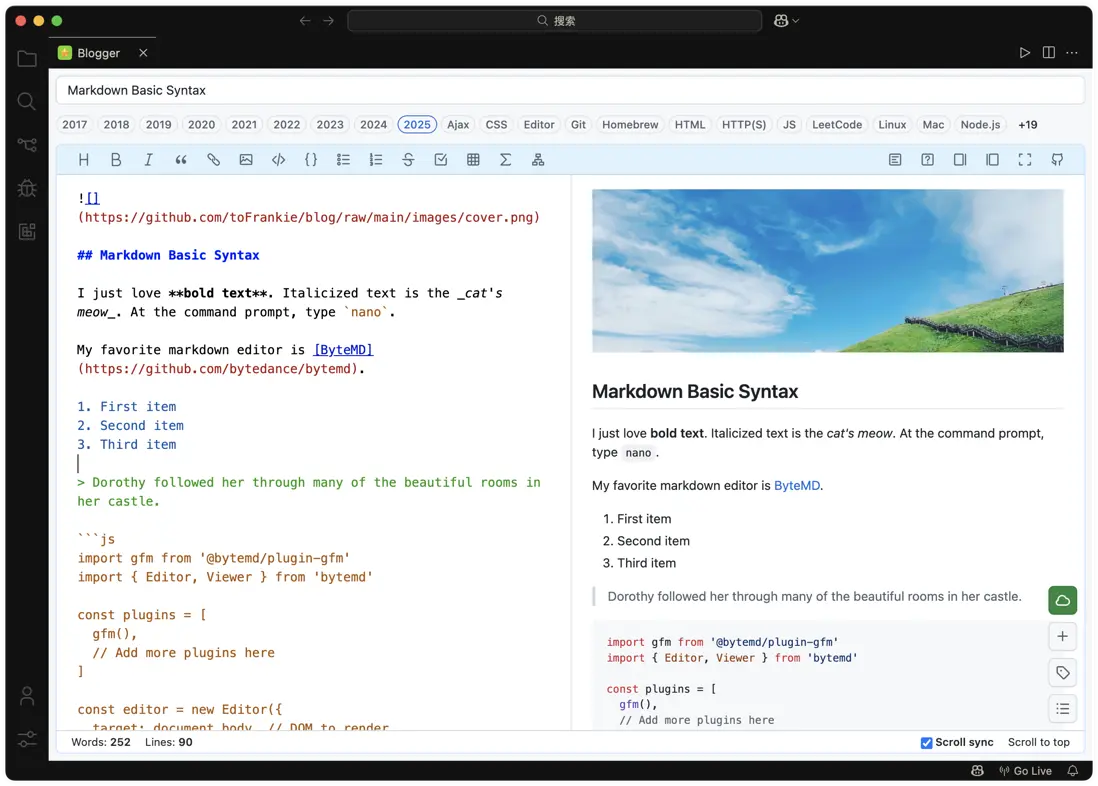 - 使用 GitHub Blogger 作為編輯器,可以快速編輯、發佈(VS Code WebView Extension)。