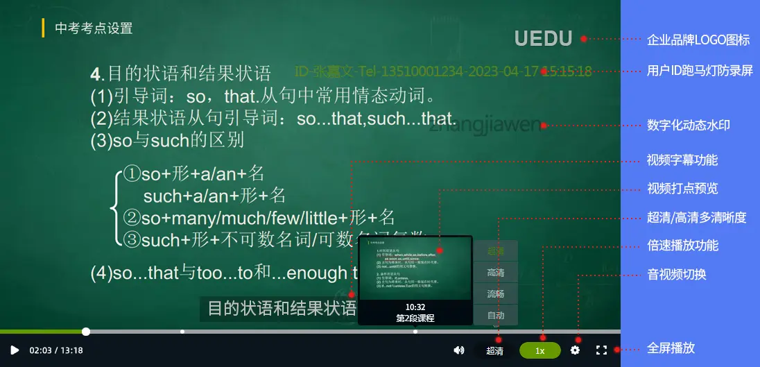 3.防錄屏(問答播放器、瀏覽器防錄屏、視頻水印及ID跑馬燈)