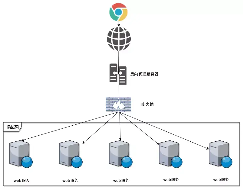 答案是可以通過反向代理來完成。通常你們公司擁有自己的IDC機房,機房通訊通常採用局域網交換機,internet網用户請求是無法直接訪問到局域網內的web服務的,因此這個時候,你需要一台反向代理服務器來接收internet web請求,然後將請求分發到局域網中的不同主機上進行處理,處理完成之後再做出響應。因此,反向代理大概就是這麼一個場景。請記住,反向代理中,我們的角色是 局域網 web服務
