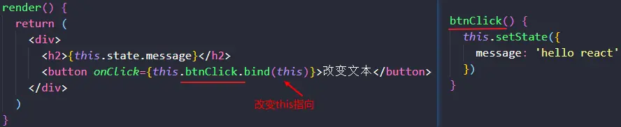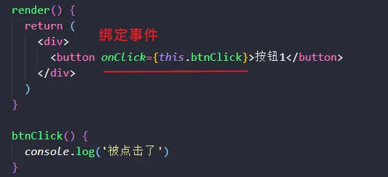 btnClick函數並不是我們主動調用的, 而且當button觸發點擊事件時,React內部調用了btnClick函數 - 而它內部調用時, 並不知道如何綁定正確的