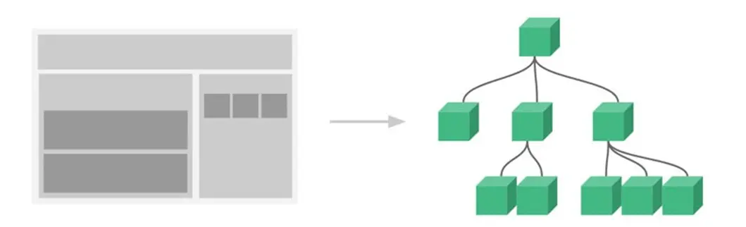 - 在這個理念中,UI以一種理想化或者説虛擬化的方式保存在內存中,並且它是一個相對簡單的JavaScript對象