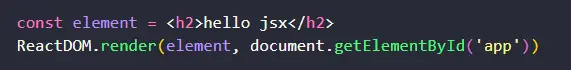 ReactDOM.render(<h2>Hello World</h2>, document.getElementById('app'))