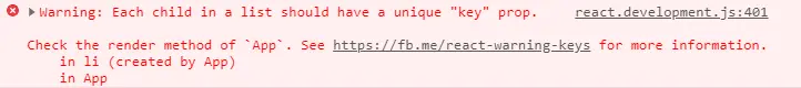 - 這個警告是告訴我們需要在列表展示的jsx中添加一個key.