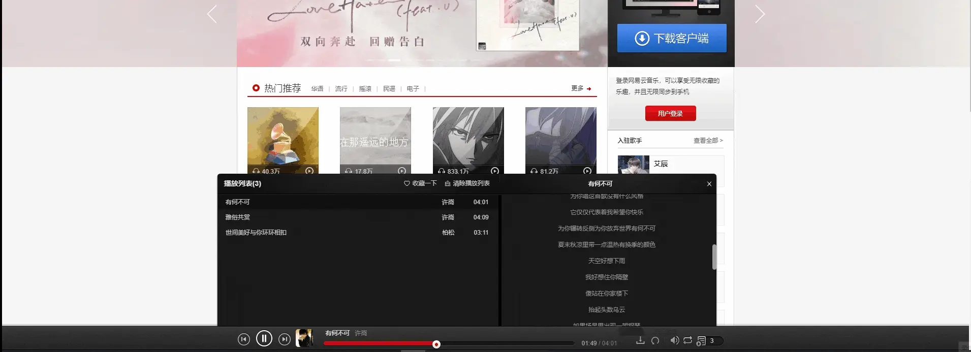 - 每日推薦歌單(只有登錄成功才能查看)