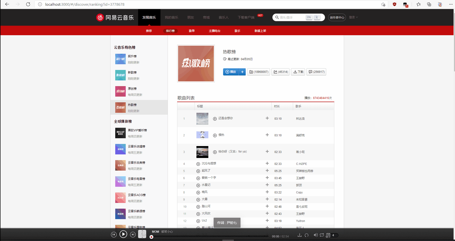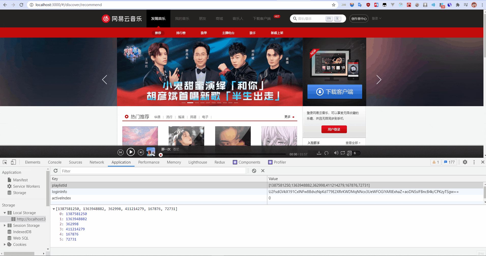 - (刷新瀏覽器,歌曲列表依然存在)
