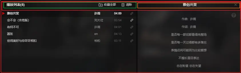 - 清除全部歌曲