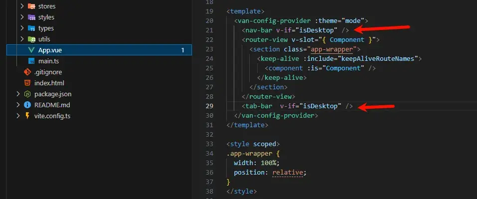 5、tabbar在App.vue文件裏,你可以手動控制tabbar的顯隱